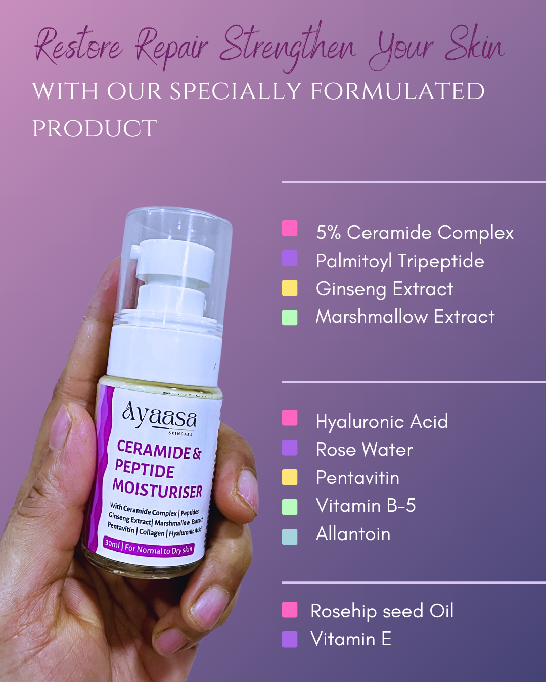 Unlock youthful radiance with our luxuriously advanced moisturiser. Infused with 5% ceramide complex, powerful peptides, and other skin-nourishing ingredients like hyaluronic acid, marshmallow extract, ginseng extract, collagen and what not..it’s your ticket to glowing, age-defying beauty. Embrace skin that’s truly nourished and rejuvenated with long lasting hydration.